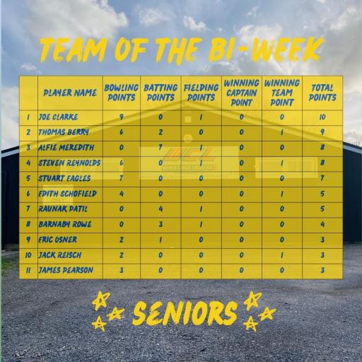 | Player Name | Senior Bowling Points | Senior Batting Points | Fielding Points | Winning Captain Point | Winning Team Point | Senior Total Points | |